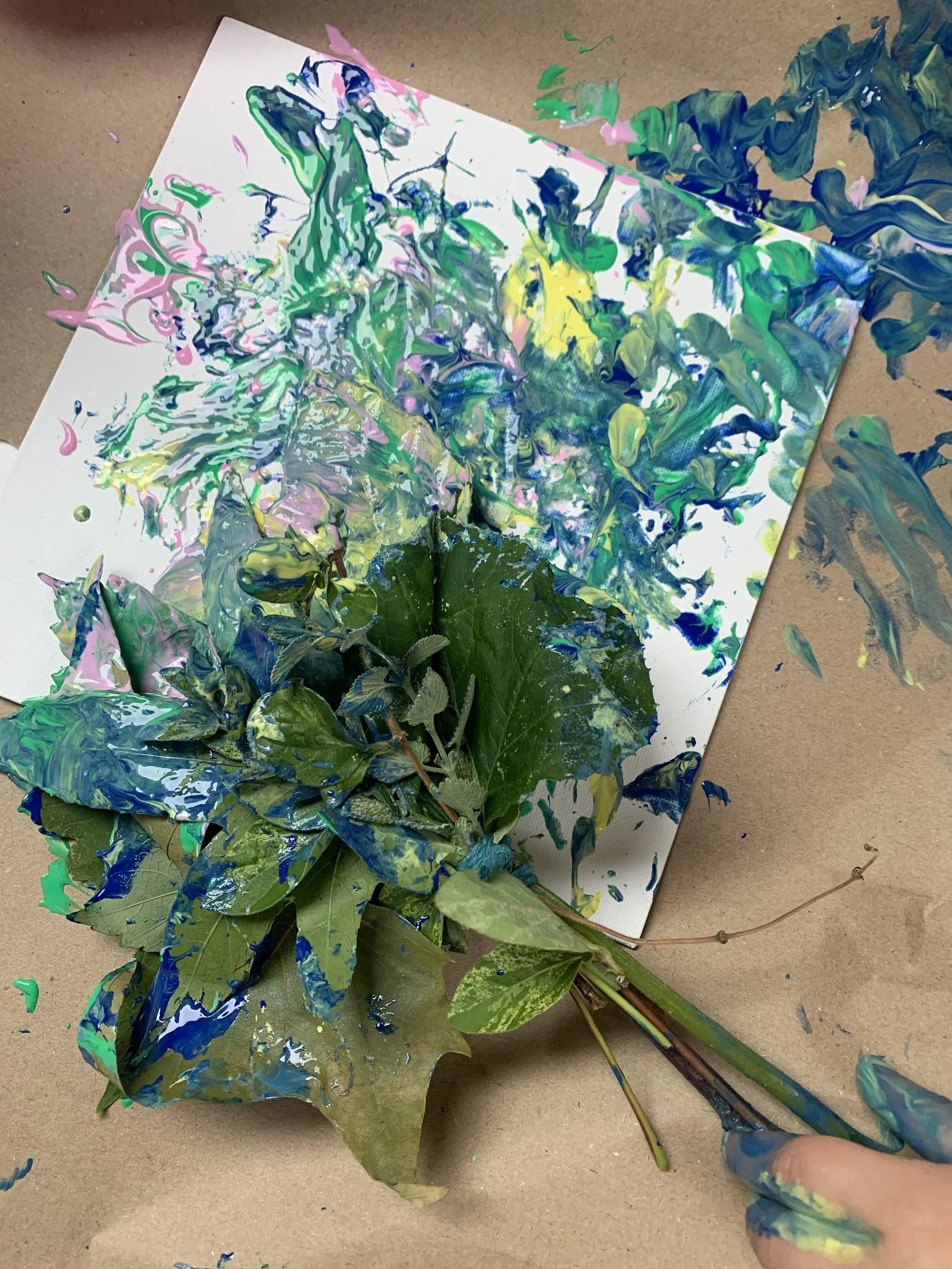 This is a really fun activity that can be done with kids of all ages. Encourage your little one to pick some leaves and foliage from a walk or your garden and tie the bunch with string. Provide some paint (I tend to limit the colour palette to avoid the inevitable brown sludge) and let your little one paint away! I did this with my 19 month old and he loved it. He picked up the leaves and enjoyed playing around with the painty leaves. It did get a bit messy so I recommend laying down craft paper and to wear an apron or dress them from messy play. Enjoy!