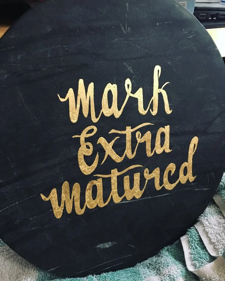 A cheeseboard for a customers 60th birthday. A little cheeky but we did not decide what to put onto the board! It proves you can get very creative with gilding
