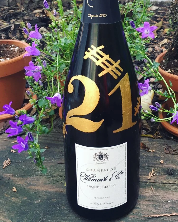 If you can supply the bottle, I can do the motif! Beautiful bottle for a big celebration. Also great as a wedding gift.